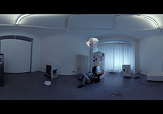 The perspective oscillates between the offline world, pinnacled as nature, and an indoor scenario. While the natural outside world becomes increasingly mechanized, deformed and finally fully abstracted through the employment of machine learning GANs, the protagonist becomes increasingly absorbed and displays signs of an estrangement from their surroundings, others, and even themselves.