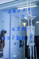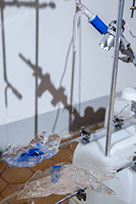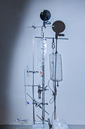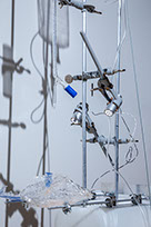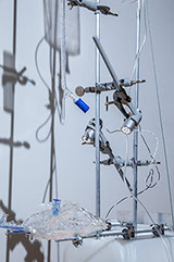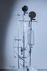 The 'Biofluidator', is a sculptural device that generates various body images through light-water reflections. The device charts data about water percentages in the human body and outputs it to ml amounts made visible as light-reflections.