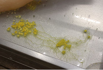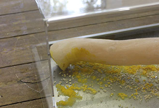 ‘Body Habitat’ is a media-artistic-scientific examination of non-human forms of life. It explores the artistic work with a vital organism and translates its habitat into a living sculpture to create a visceral connection between the viewer and a completely different form of life - the slime mold: Physarum polycephalum -, whose habitat and abilities for survival are a central theme in order to vividly lead the viewer back to a direct confrontation with nature.