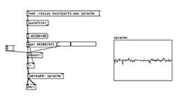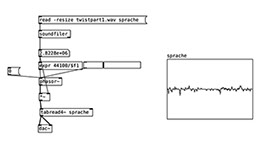The project uses the visual programming language Pure Data to expand upon the curiosity around how pronunciation of spoken word, characterised by rhythm, pauses and intonation play with cognition through language. The digital scenography is formed by the lyrical concepts of the language